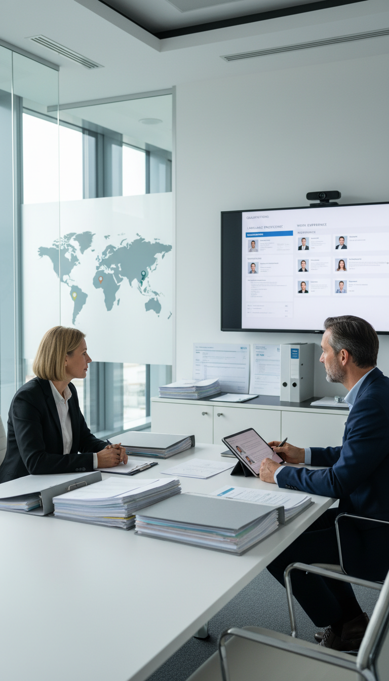 Fachliche Eignung, Referenzen, Sprachkompetenz und Passung zum Arbeitsumfeld werden vorab geprüft.